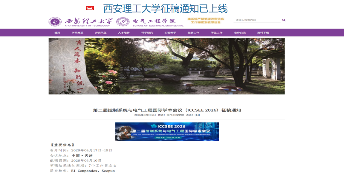 第二届控制系统与电气工程国际学术会议(ICCSEE 2026)将于2026年4月17-19日在中国·天津举办,由兰州交通大学主办,天津大学、广东工业大学、华北电力大学、天津科技大学、武汉大学智能电网研究院、重庆大学、西安理工大学、东北电力大学、宁夏大学、福耀科技大学、山东大学、大连理工大学、天津大学 - 平高储能储能技术联合研究院、日本东京大学、合肥工业大学、南京工程学院、西南交通大学、国家绿色镀膜技术与装备工程技术研究中心等多院校单位协办,澳门科技文化交流协会、RDLink研发家提供支持。